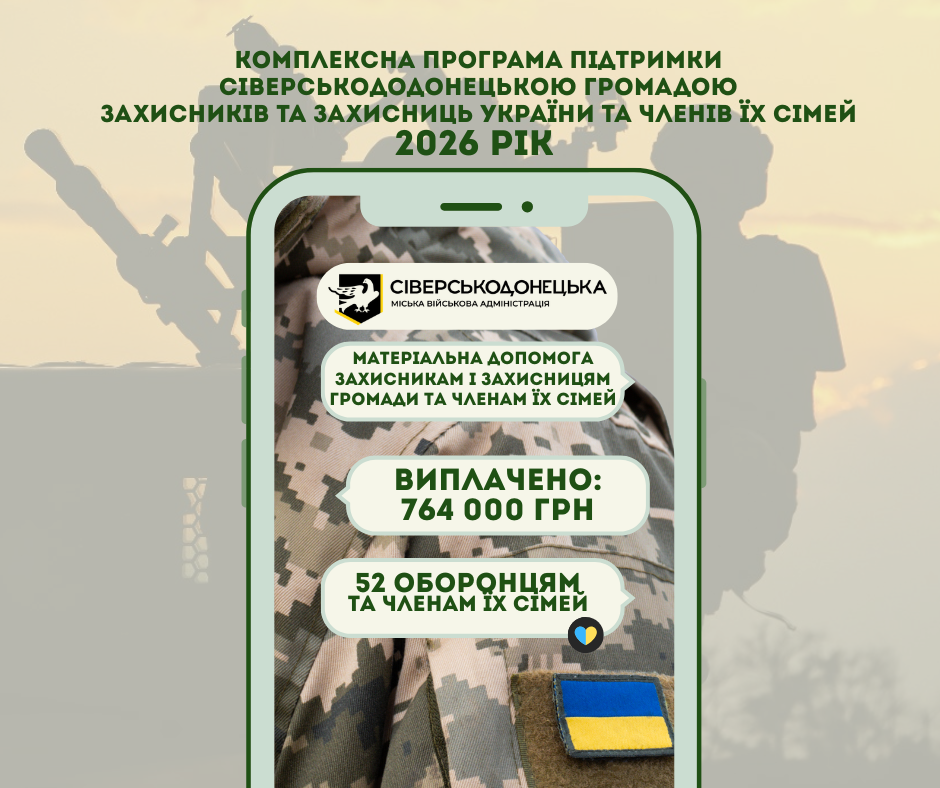As part of the activities of the Comprehensive Community Support Program for Defenders of Ukraine and their family members, another 52 servicemen from the Siverskodonetsk community and their family members received payments for a total amount of UAH 764,000: