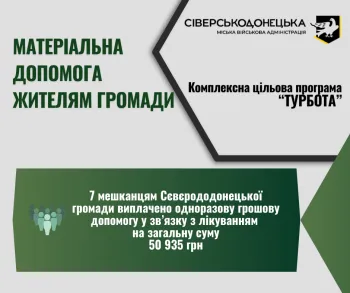 У рамках програми «Турбота» виплати у зв’язку з лікуванням отримали ще 7 мешканців Сєвєродонецької громади чт, 6 лис 2025 - 12:31