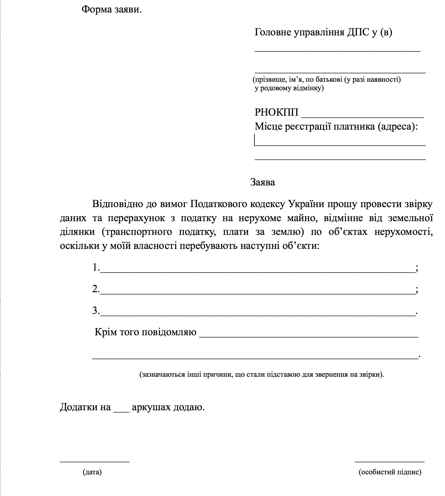 Фізичні особи — платники податку на майно, мають право звернутися з письмовою заявою до контролюючого органу за своєю податковою адресою для проведення звірки даних, зокрема щодо: об’єктів оподаткування, розміру площі об’єктів оподаткування, права на користування пільгою зі сплати податку, розміру ставки податку та нарахованої суми податку.