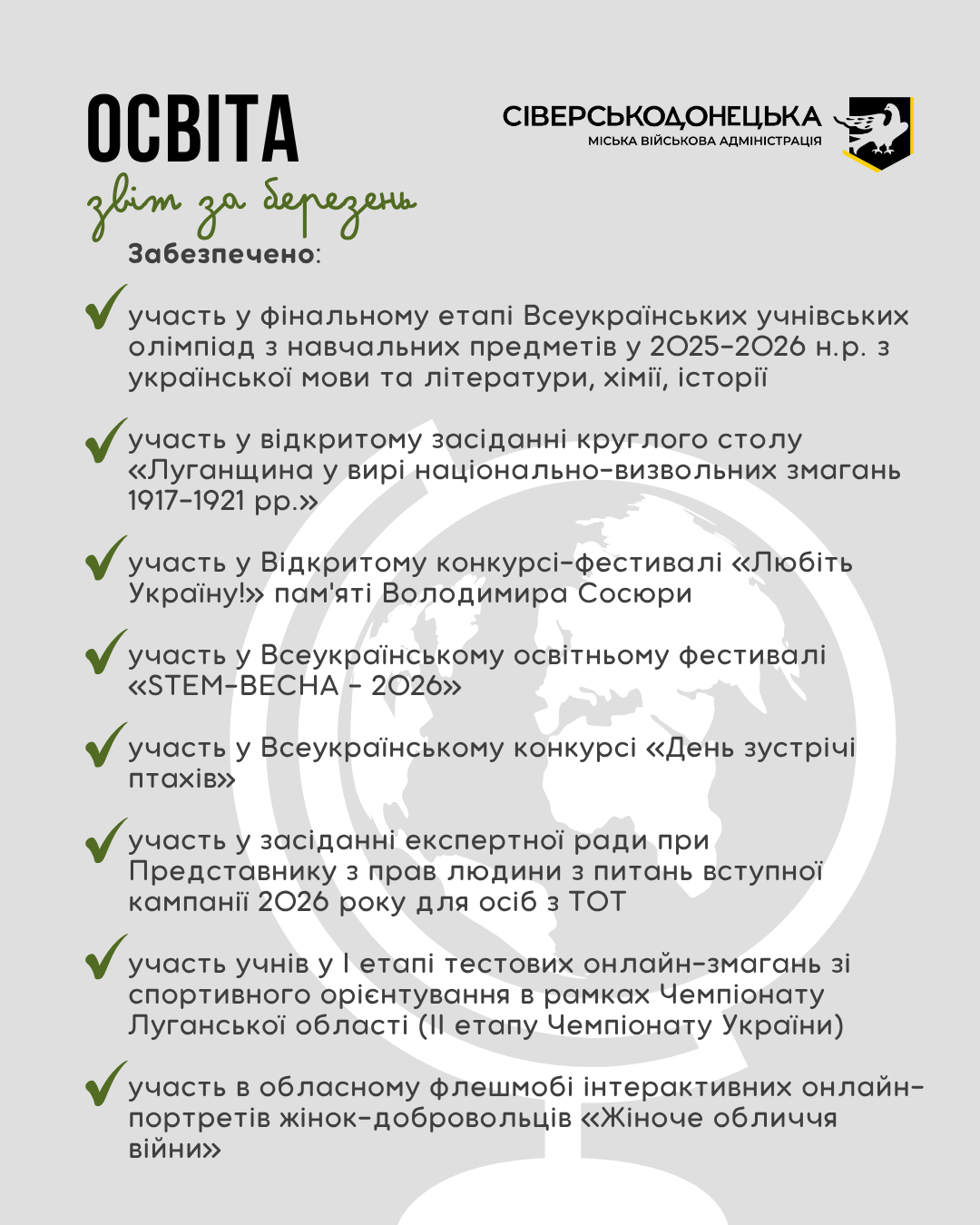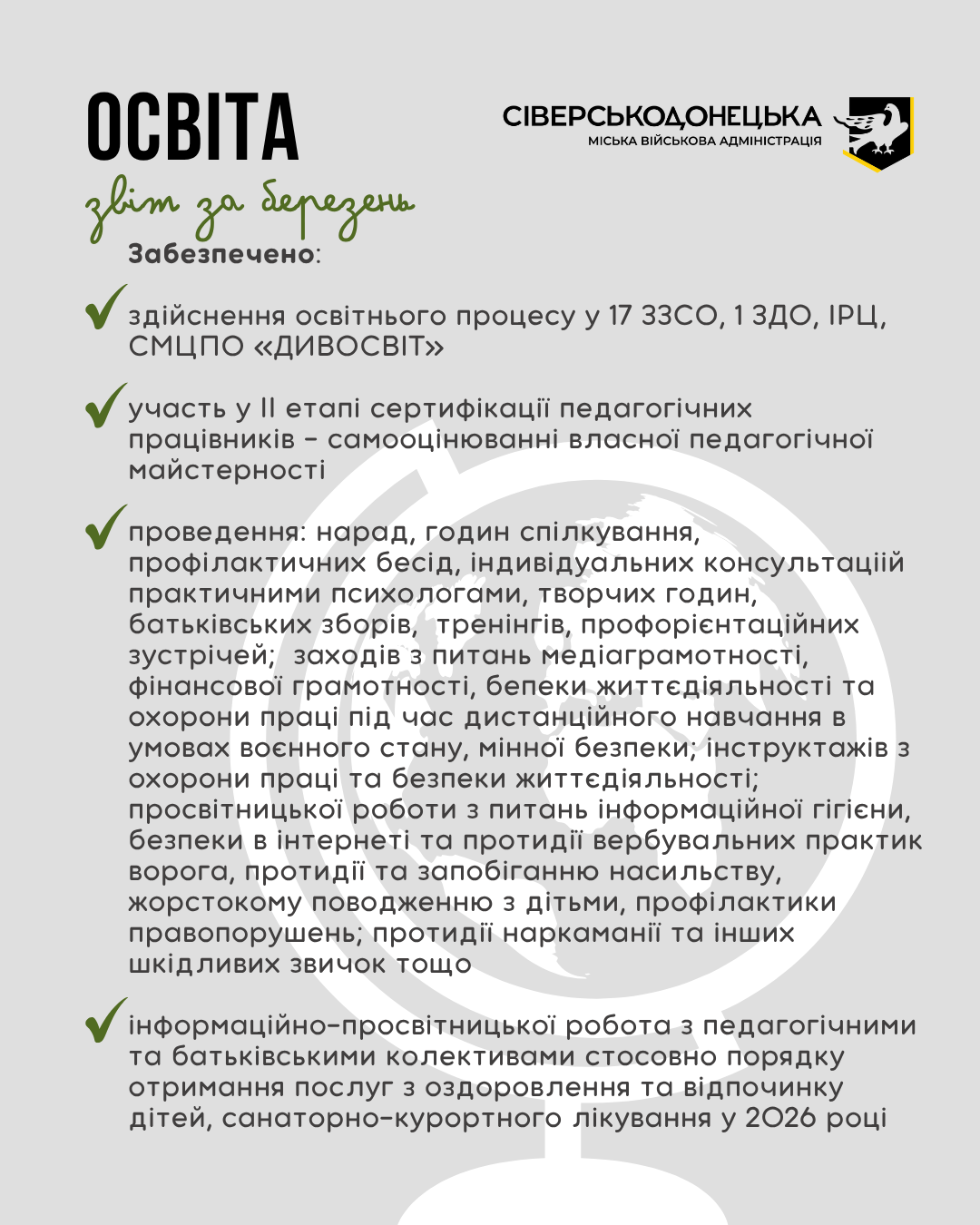 Інформуємо про проведену роботу та проведені заходи за березень 2026 року