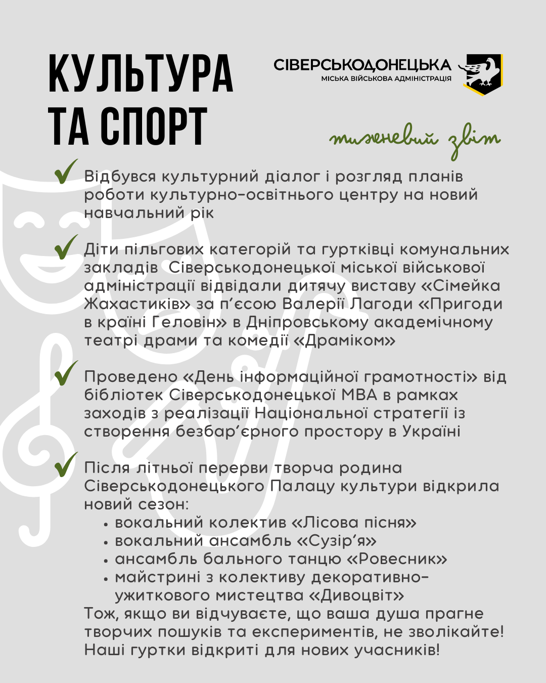 Інформуємо про проведену роботу та проведені заходи за минулий тиждень