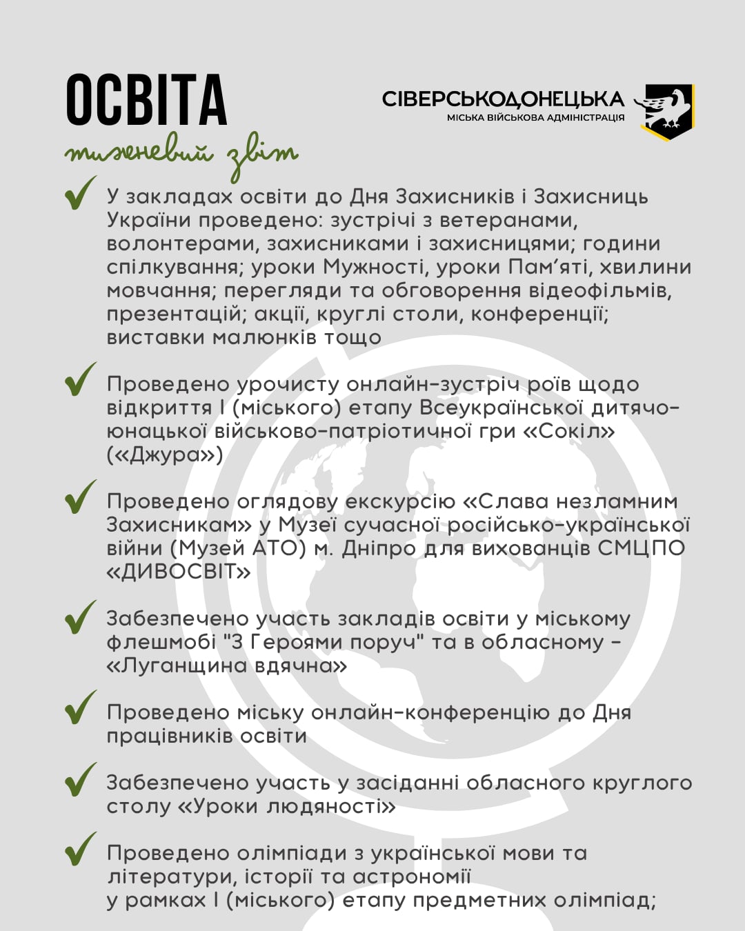 Інформуємо про проведену роботу та проведені заходи за минулий тиждень