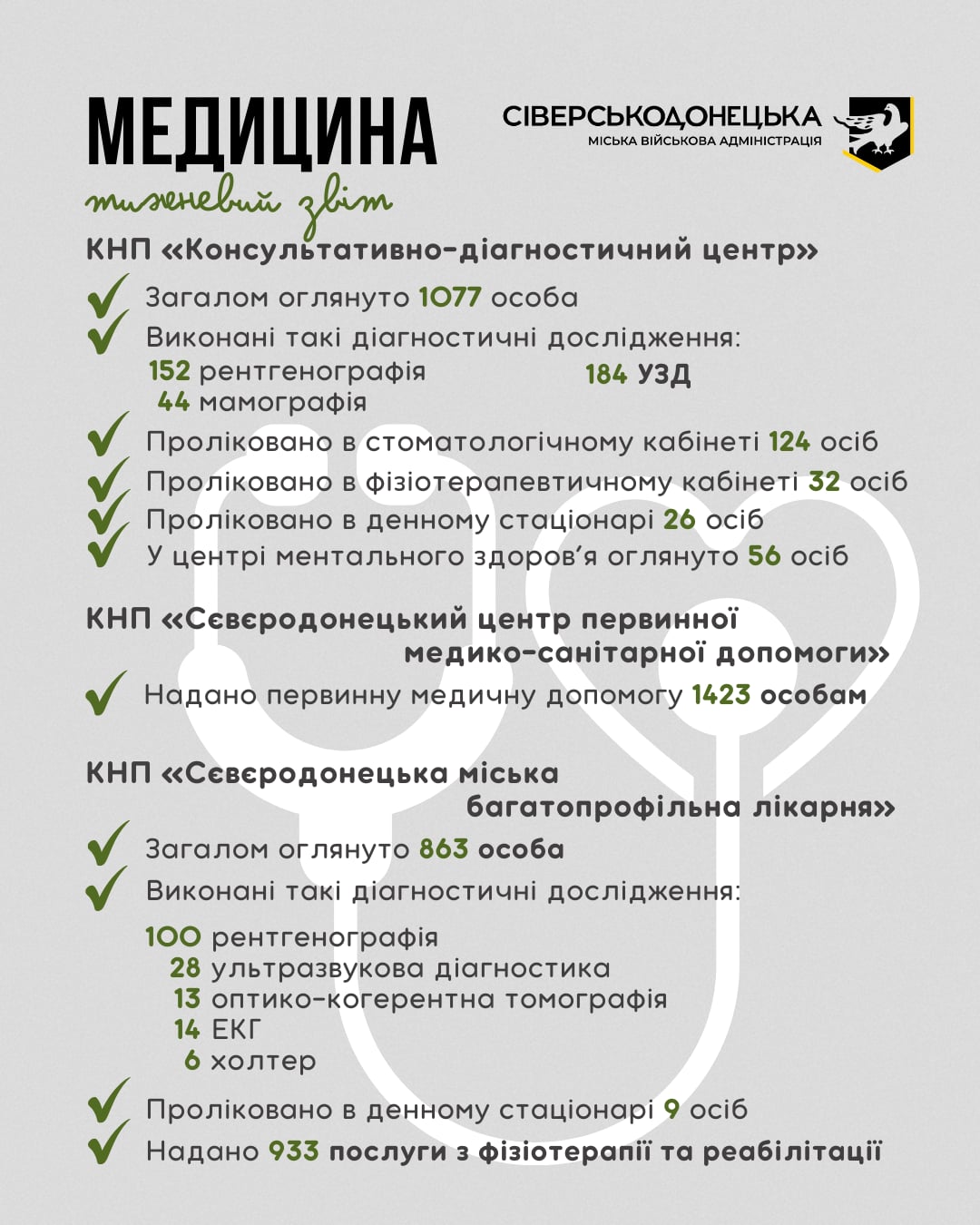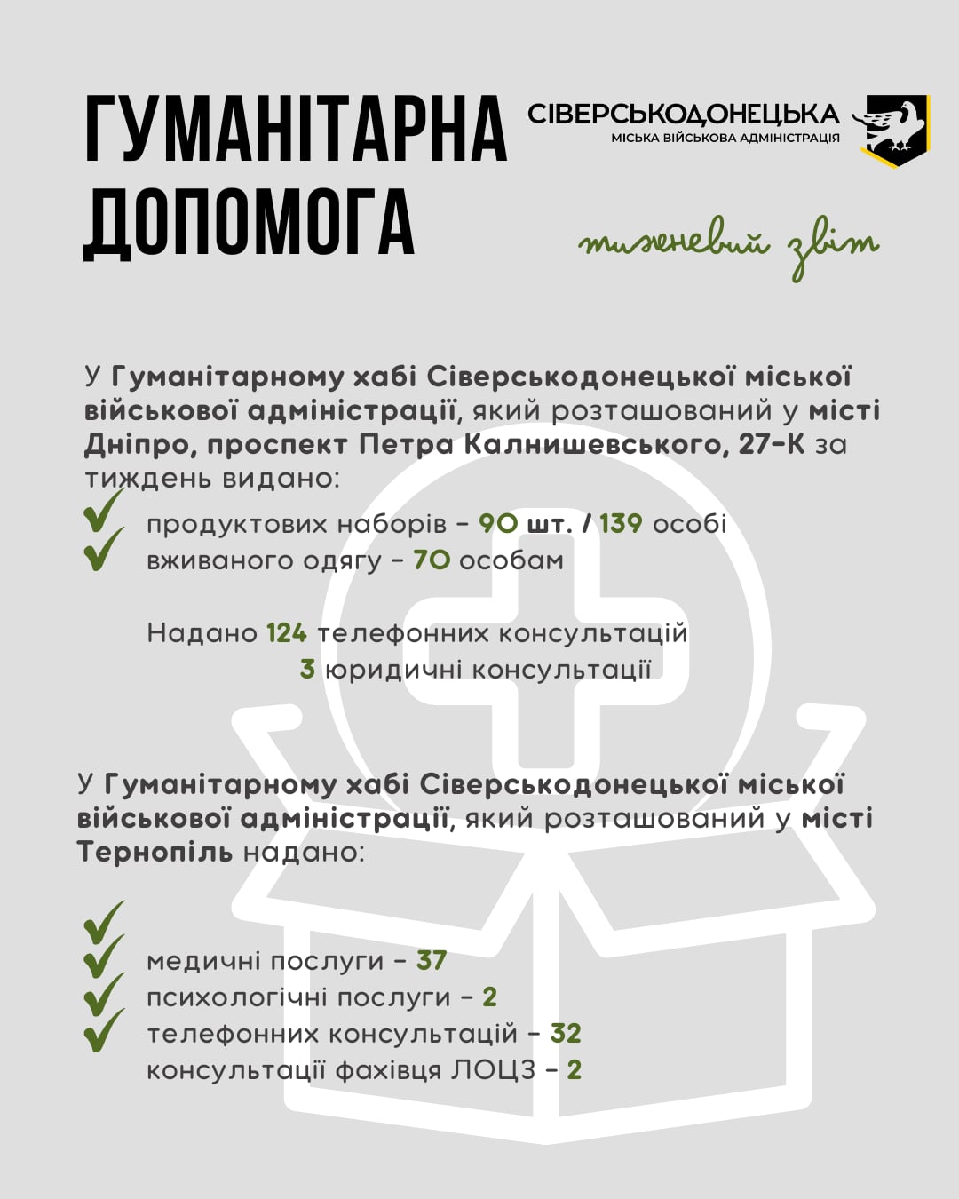 Інформуємо про проведену роботу та проведені заходи за минулий тиждень