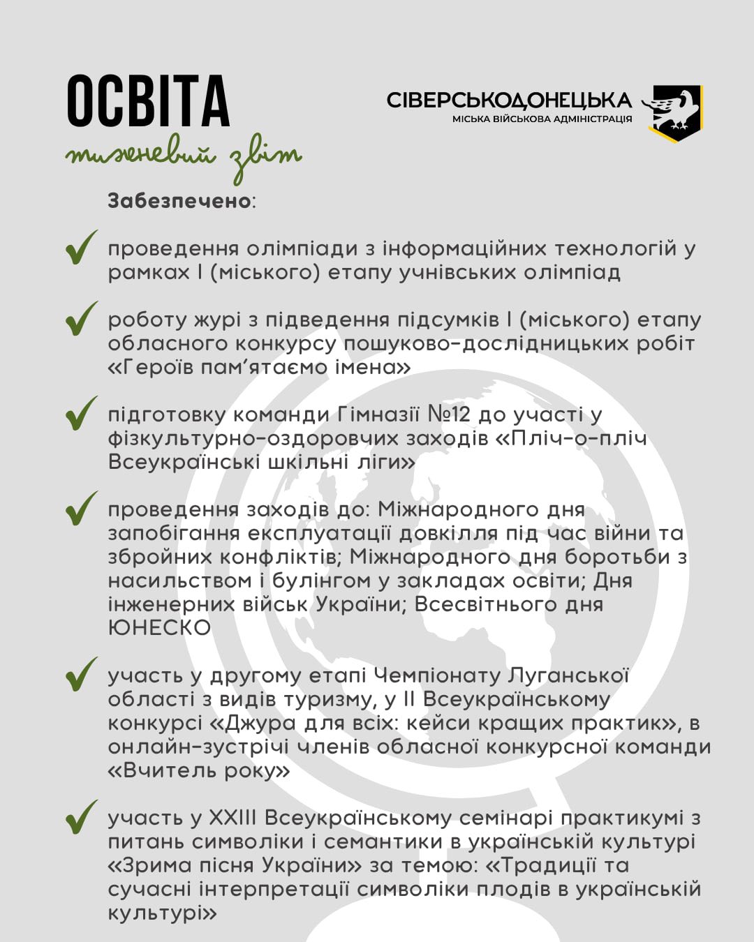 Інформуємо про проведену роботу та проведені заходи за минулий тиждень