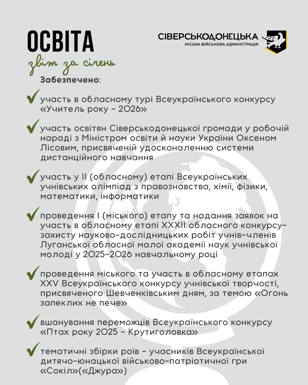 Інформуємо про проведену роботу та проведені заходи за січень 2026 року