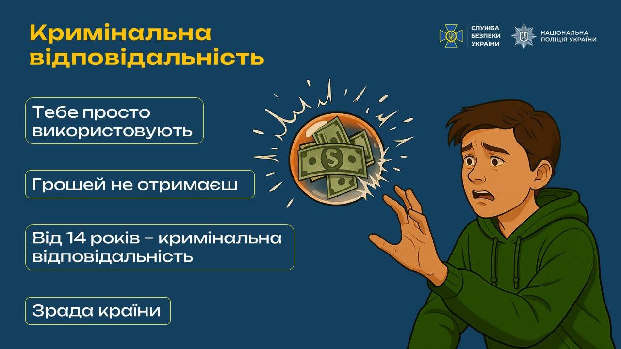 Правоохоронці розповіли дітлахам, що вербувальник фсб може ховатись серед звичайних повідомлень – запропонувати «легкий» заробіток або цікаву гру, залякувати або шантажувати. Його завданнями можуть бути підпали, мінування, теракти, фотографування об’єктів, передача ворогу інформації.