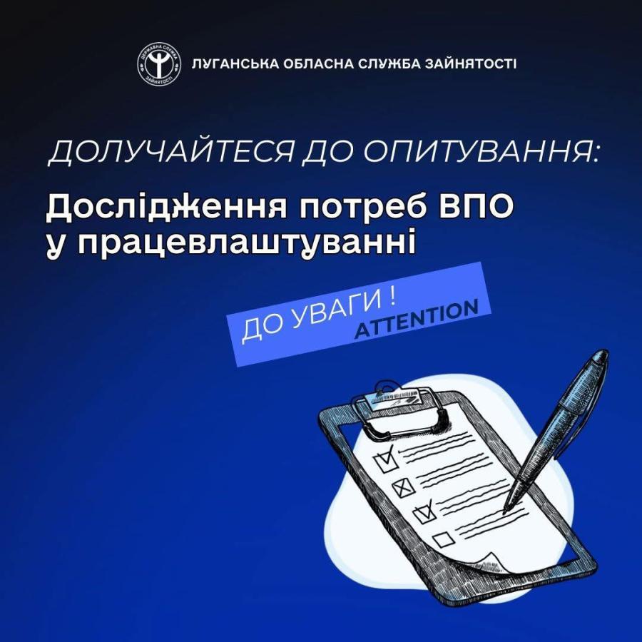 Для дослідження та оцінки існуючих потреб і можливостей у сфері працевлаштування, інтеграції на ринку праці, вдосконалення програм підтримки внутрішньо переміщених осіб та створення умов для повноцінної адаптації на новому місці запрошуємо вас взяти участь у короткому опитуванні.