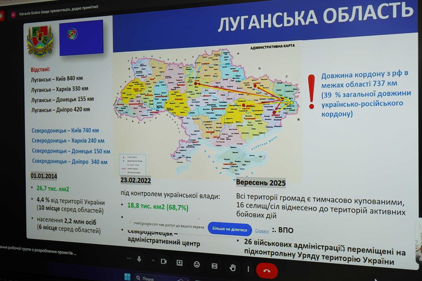 Вона презентувала аналіз основних тенденцій розвитку Луганської області за періоди до 2014 року, від 2014-го до 24 лютого 2022 року та після повномасштабного вторгнення, на основі якого буде формуватися стратегічне бачення розвитку громад області. Зокрема, й після деокупації території Луганщини.