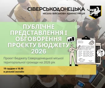 До уваги жителів Сєвєродонецької громади! 19 грудня - публічне представлення проєкту бюджету Сєвєродонецької міської територіальної громади на 2026 рік ср, 10 гру 2025 - 16:00