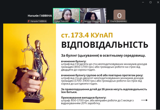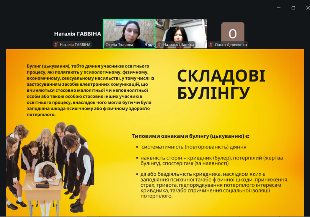 З тематичними презентаціями з питань законодавчої бази, причин булінгу, кібербулінгу і як протидіяти цим ганебним явищам виступили запрошені спікери: