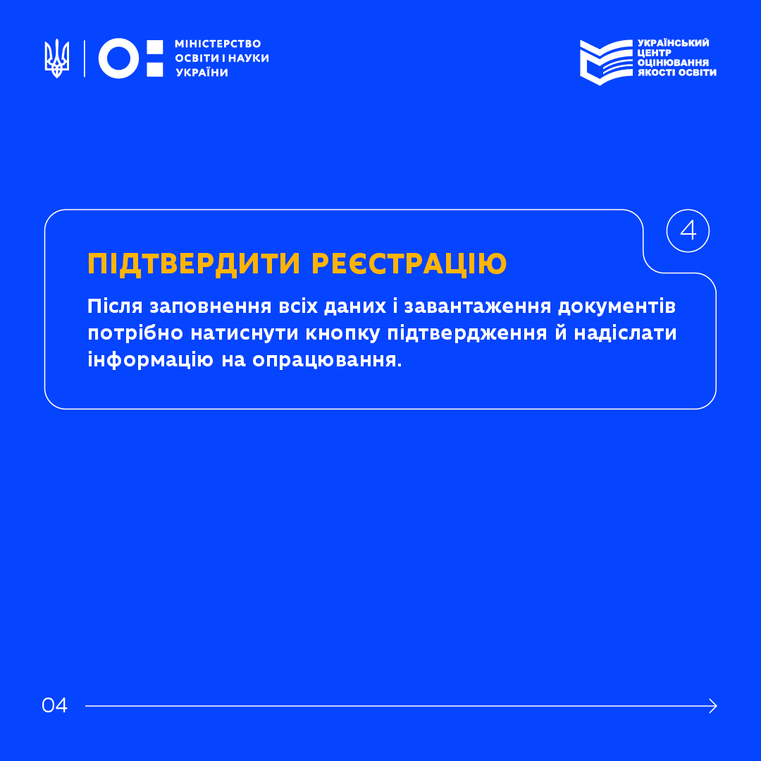 Створіть персональний кабінет на сайті Українського центру оцінювання якості освіти (https://my.testportal.gov.ua/registration/nmt);