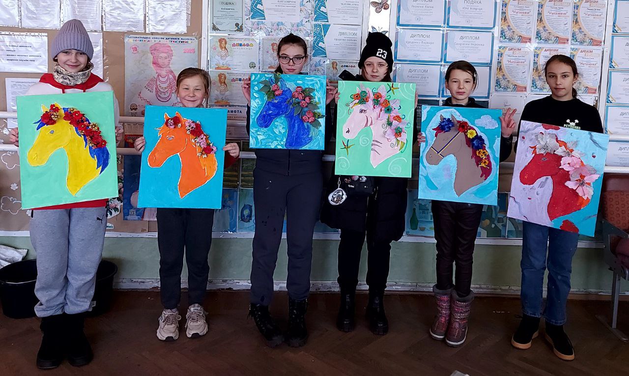 Учні створювали власні талісмани 2026 року – коней, використовуючи фарби, невеликі квіти, прикраси та особисту фантазію.
