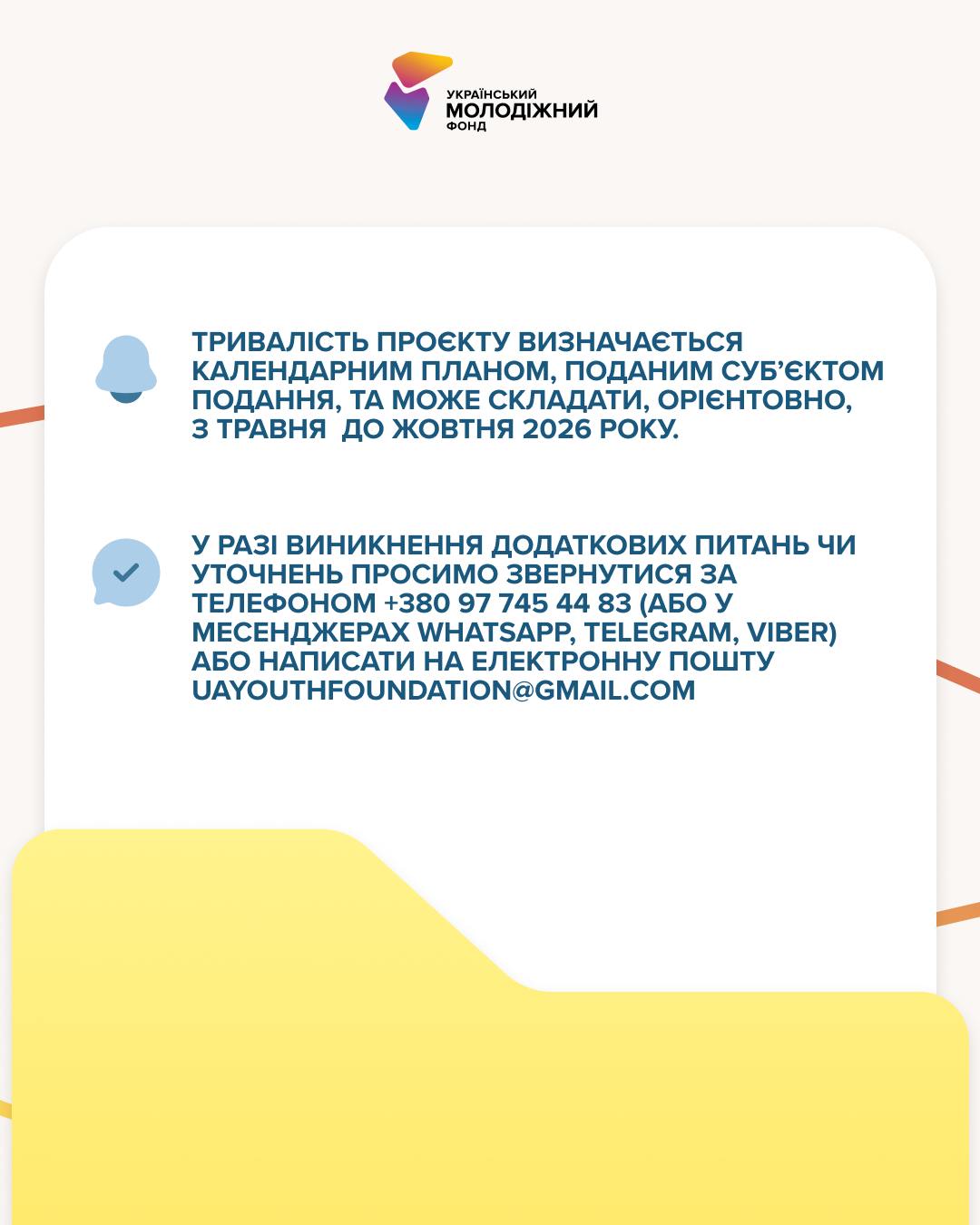 Якщо виникнуть питання - команда Українського молодіжного фонду завжди на зв’язку: