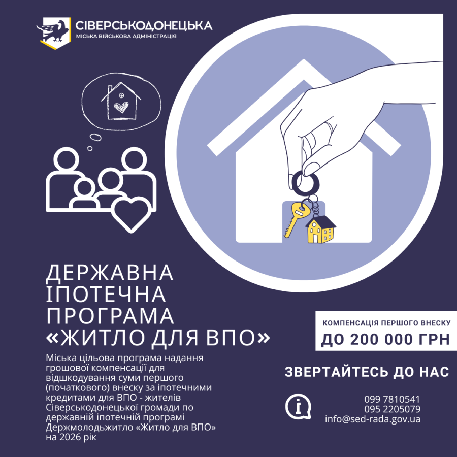 чт, 19 бер 2026 - 16:20 Сіверськодонецька МВА запускає підтримку для жителів Сіверськодонецької громади, які купують житло за іпотечною програмою Держмолодьжитло у співпраці з KfW/CEB (БРРЄ) «Житло для ВПО»