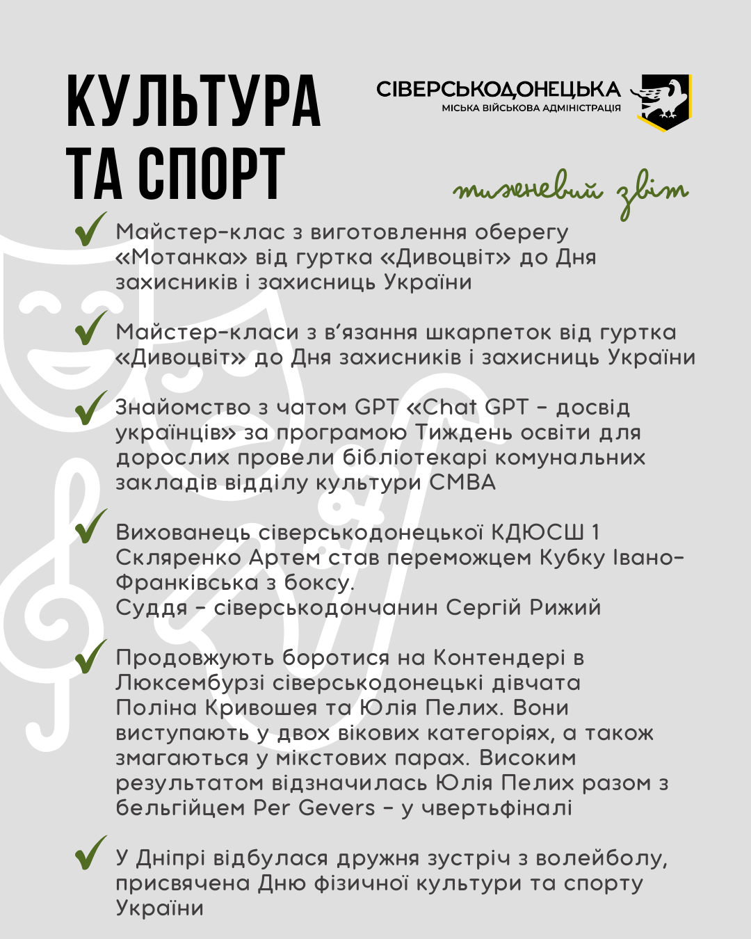 Інформуємо про проведену роботу та проведені заходи за минулий тиждень