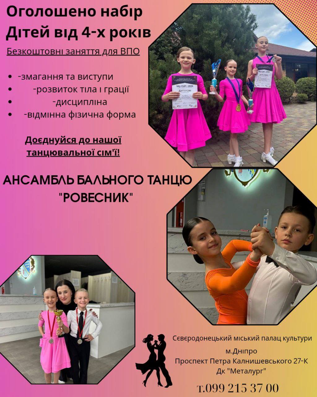 Міський Палац культури Сіверськодонецька у Дніпрі знову відкриває двері у світ творчості та запрошує дорослих і дітей до своїх колективів. Якщо ви прагнете розкрити свій талант, знайти однодумців і наповнити життя яскравими емоціями, ми чекаємо саме на вас!