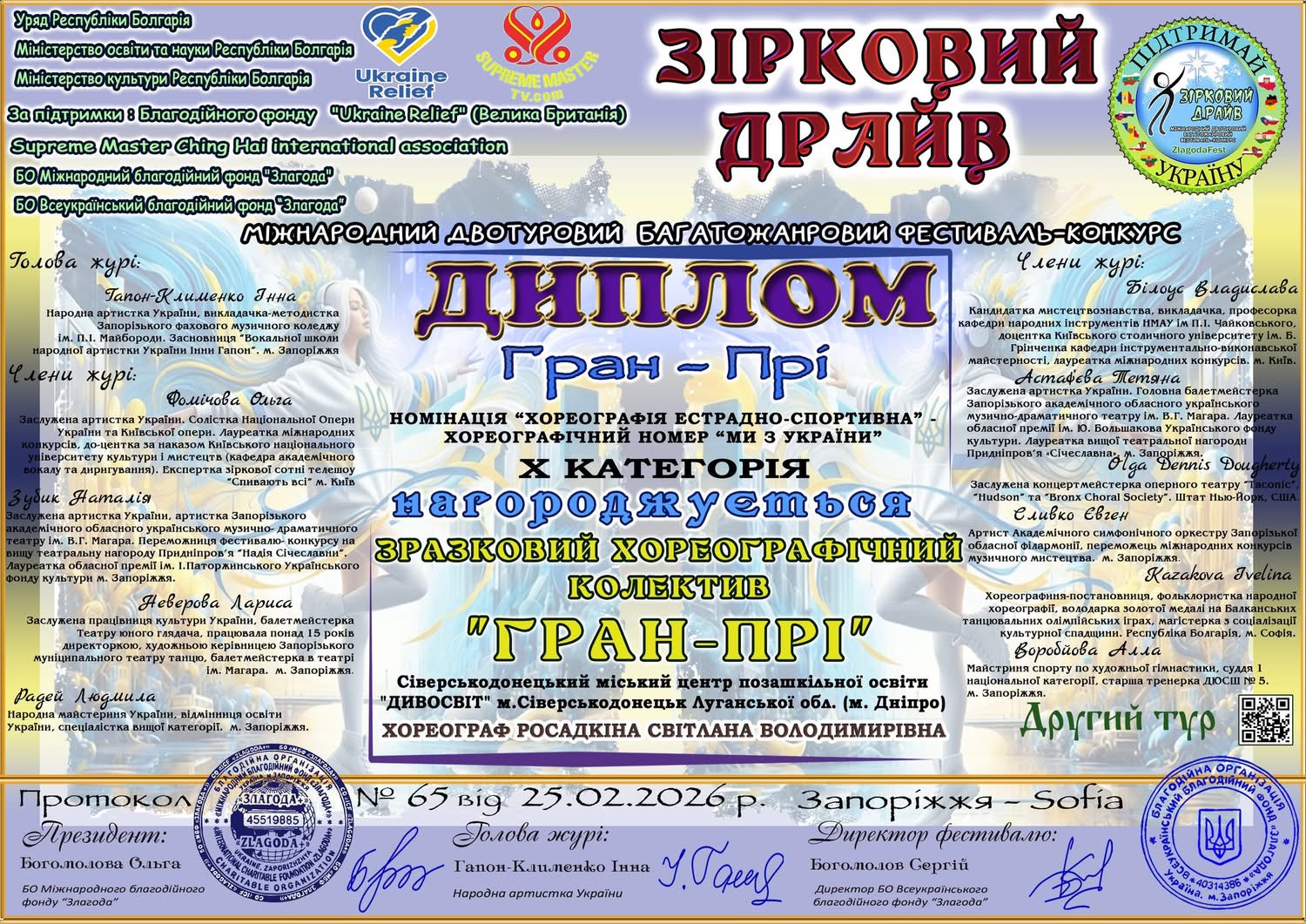 Pupils of the Exemplary Artistic Choreographic Collective "GRAN-PRI" of the Siverskodonetsk City Center for Extracurricular Education "DYVOSVIT" became the winners of the International Two-Round Multi-Genre Festival-Competition "Star Drive".