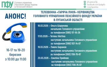 Fri, 13 Mar 2026 - 10:09 Attention IDPs! On March 16-17, 19-20, the telephone hotline of the management of the Main Department of the Pension Fund of Ukraine in Luhansk region will be open