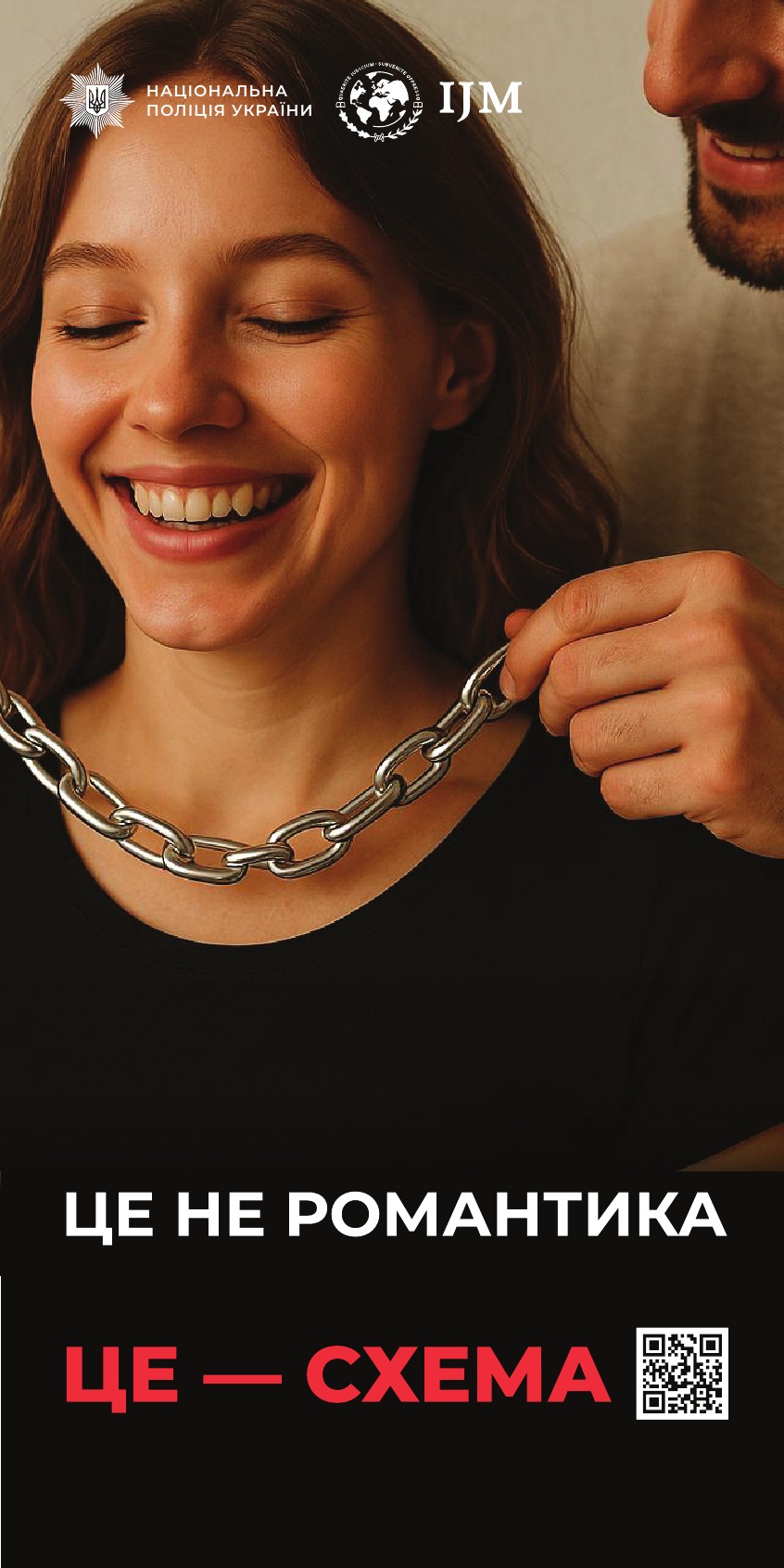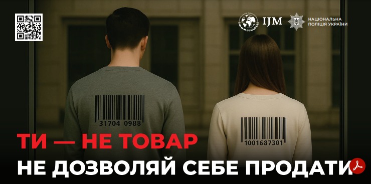 У рамках Меморандуму укладеного між Національною поліцією України та фондом «International Justice Mission» (далі – IJM) Департаментом міграційної поліції (далі – ДМП), Департаментом комунікації (далі – ДК) Національної поліції України та IJM підготовлено просвітницькі матеріали, спрямовані на підвищення обізнаності населення щодо проблематики торгівлі людьми та експлуатації дітей.