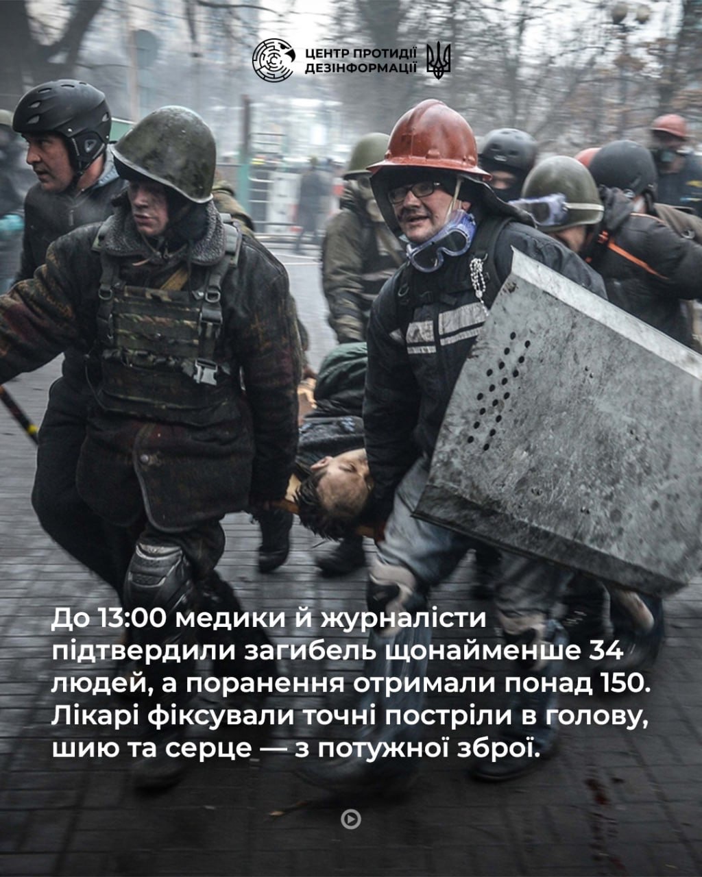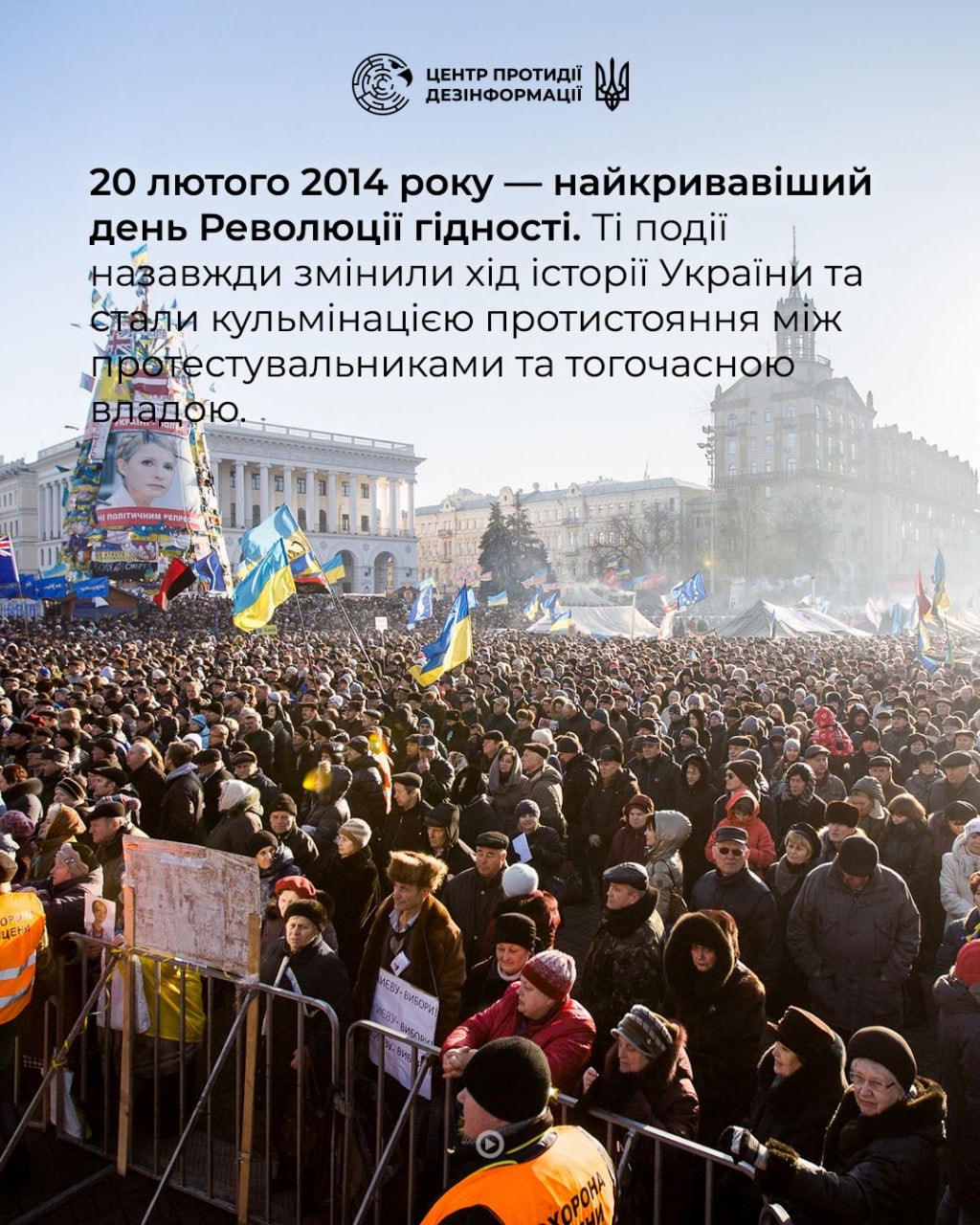 Лютий 2014 року став першим актом збройної агресії проти громадян України, які хотіли жити у вільній державі, бо були вільні духом. Той перший бій у середмісті Києва показав чимало спільного з тим, як діє путін в Україні сьогодні, бо мета його така сама, і методи такі самі – знищувати тих, хто чинить опір, вбивати беззбройних, у тому числі дітей, жінок, літніх людей.