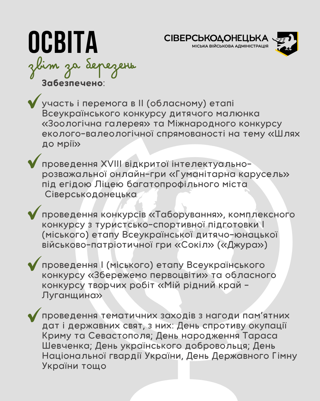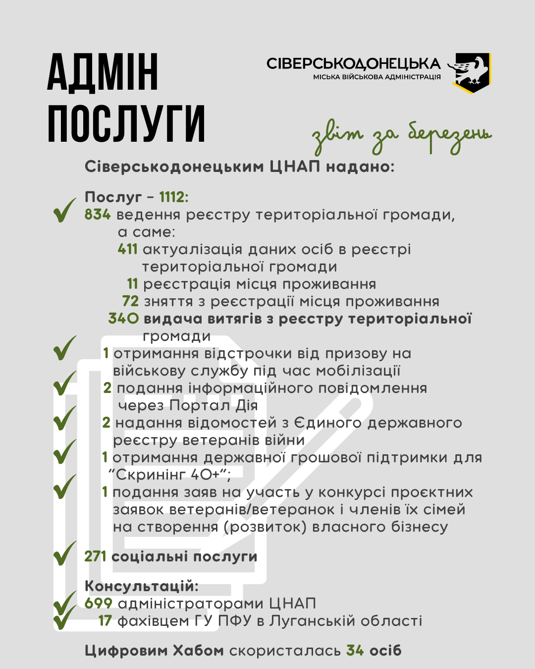 Інформуємо про проведену роботу та проведені заходи за березень 2026 року