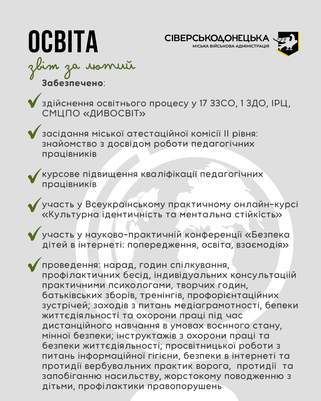Інформуємо про проведену роботу та проведені заходи за лютий 2026 року