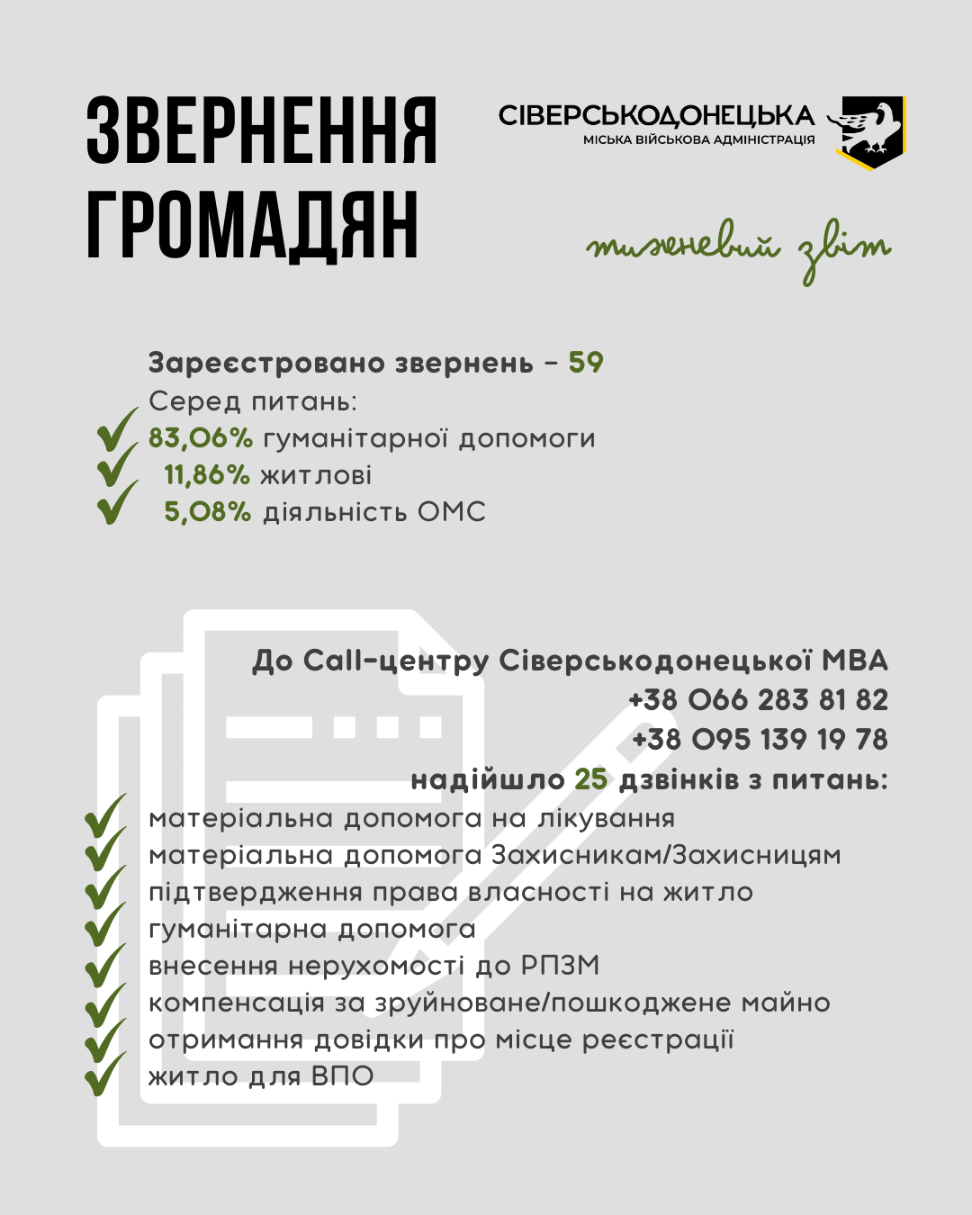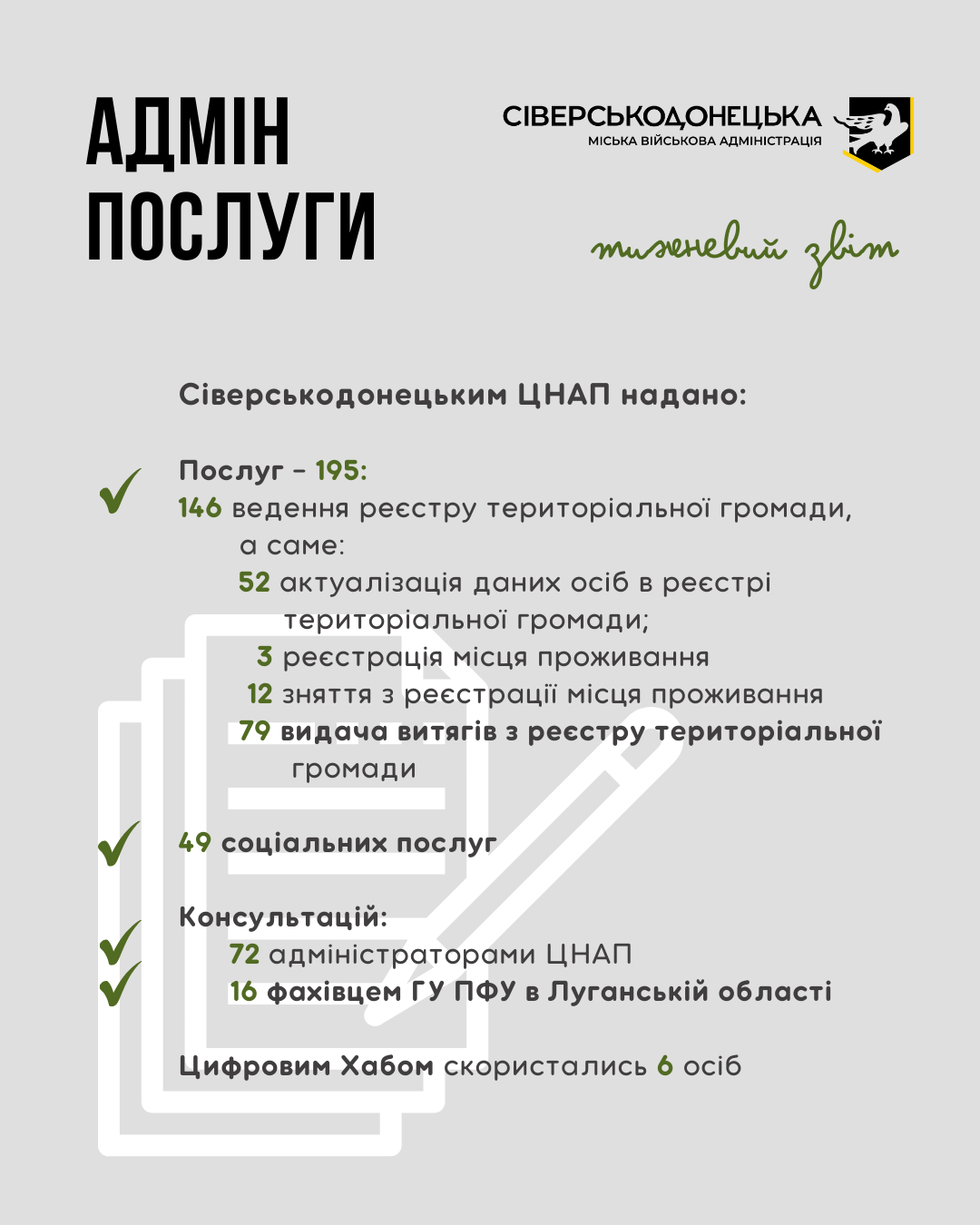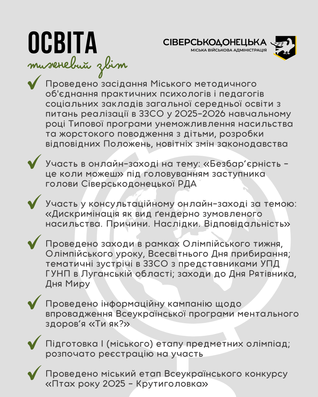 Інформуємо про проведену роботу та проведені заходи за минулий тиждень