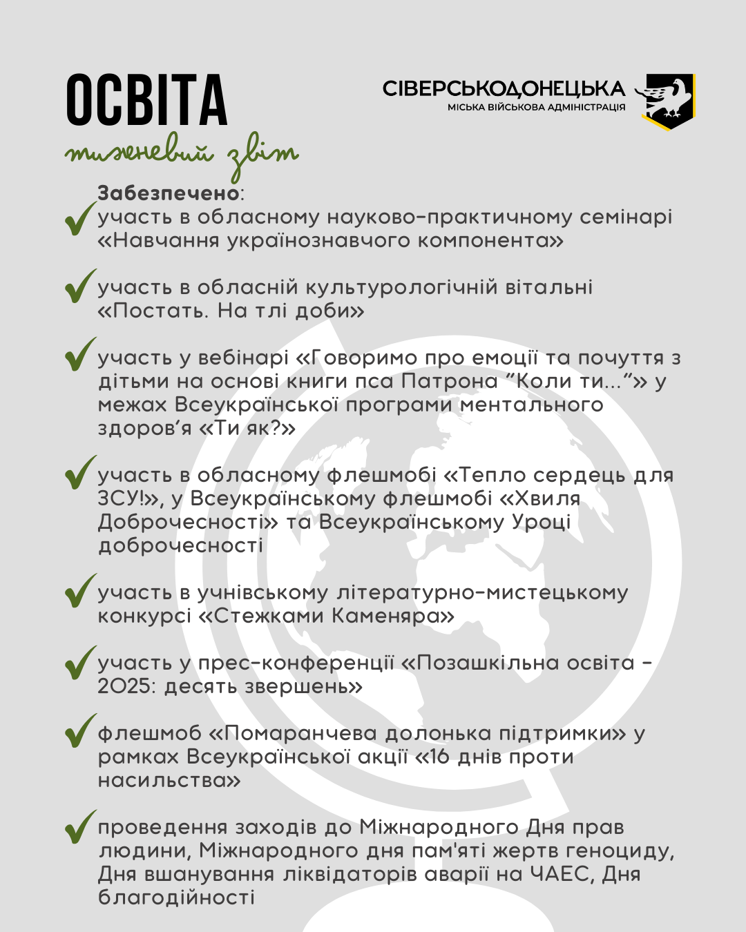 Інформуємо про проведену роботу та проведені заходи за минулий тиждень