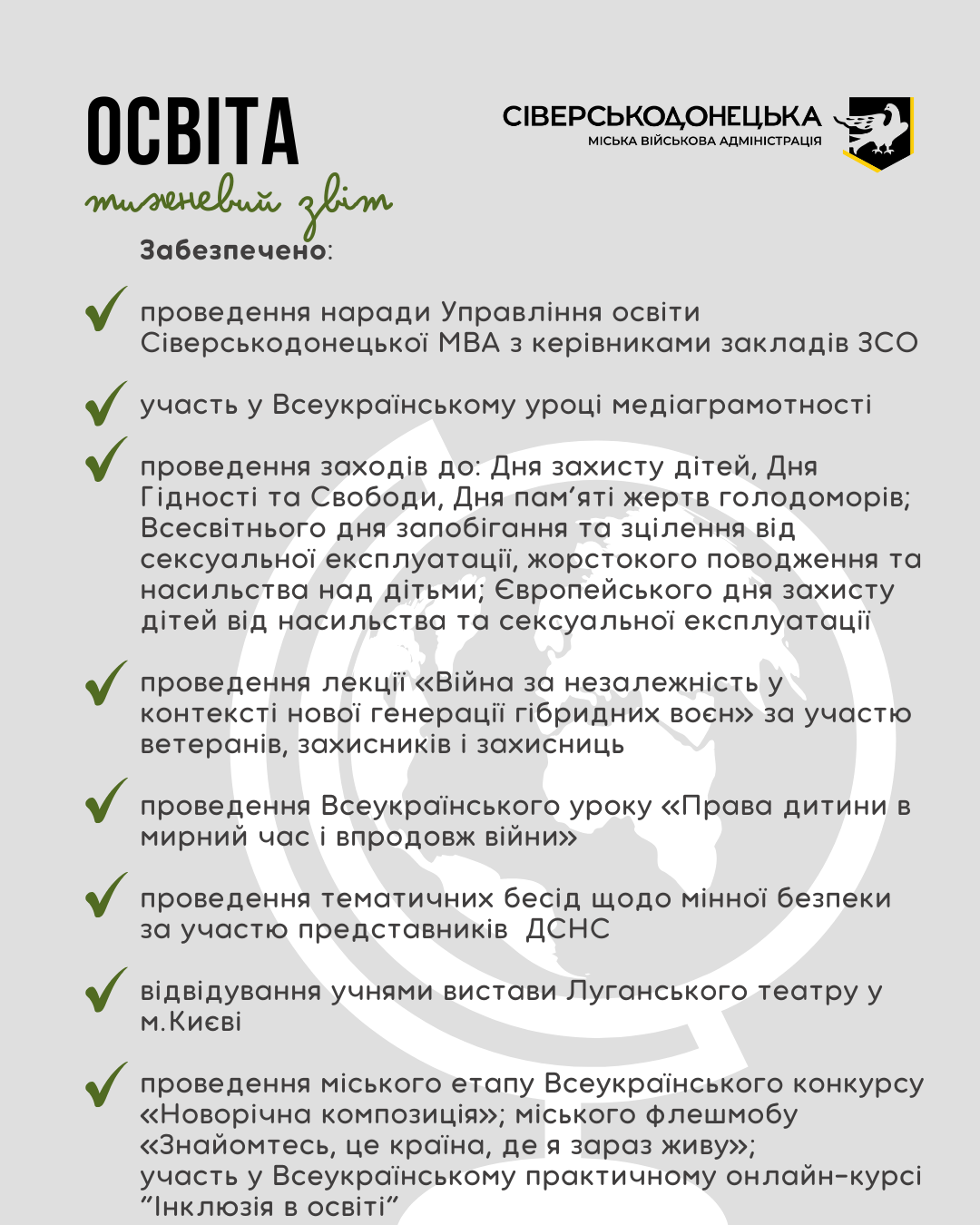 Інформуємо про проведену роботу та проведені заходи за минулий тиждень