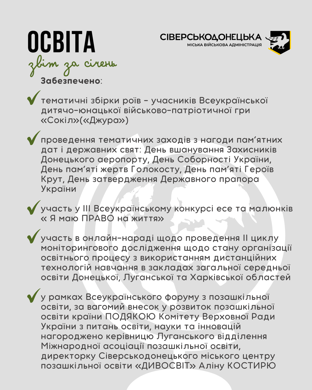 Інформуємо про проведену роботу та проведені заходи за січень 2026 року
