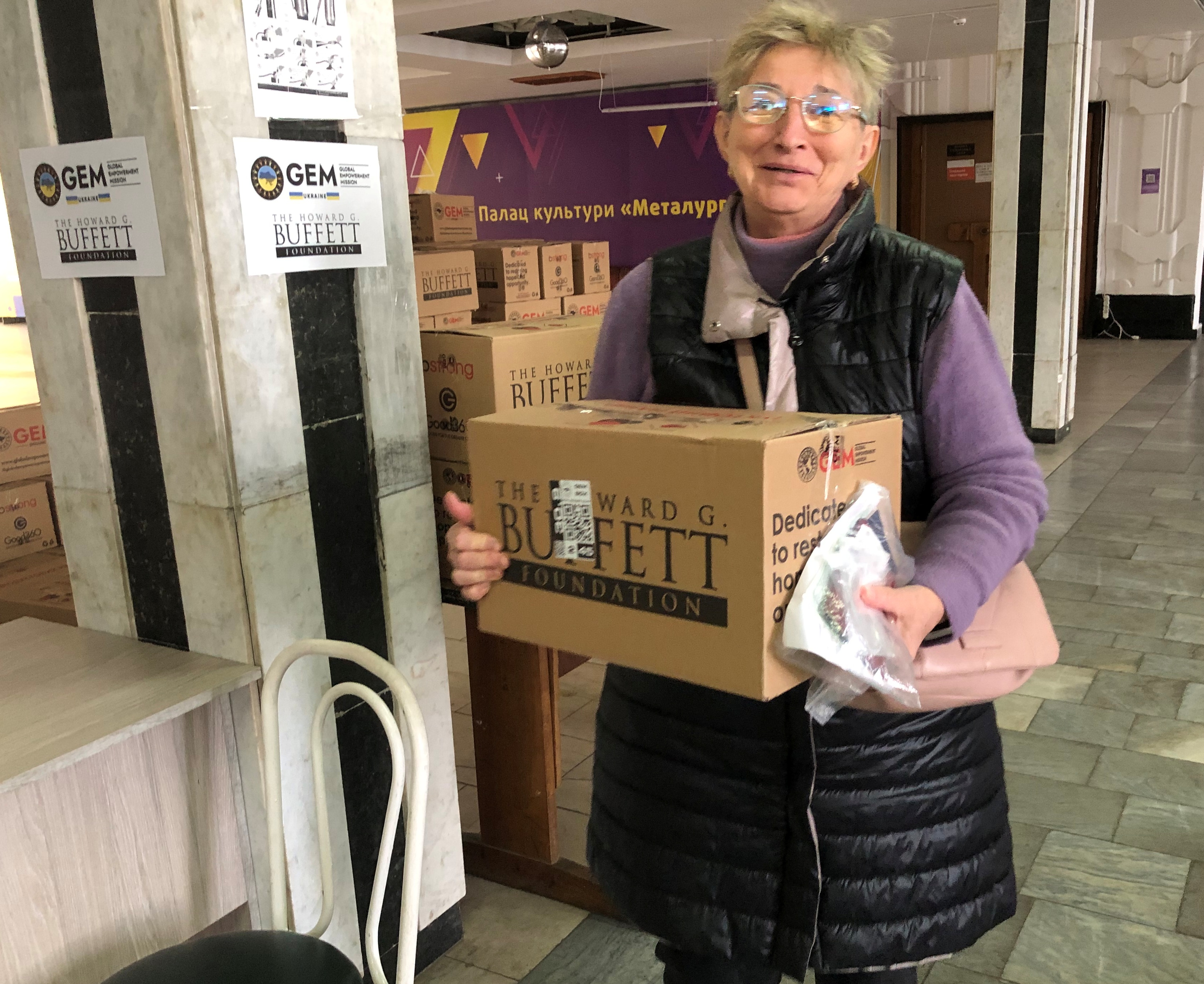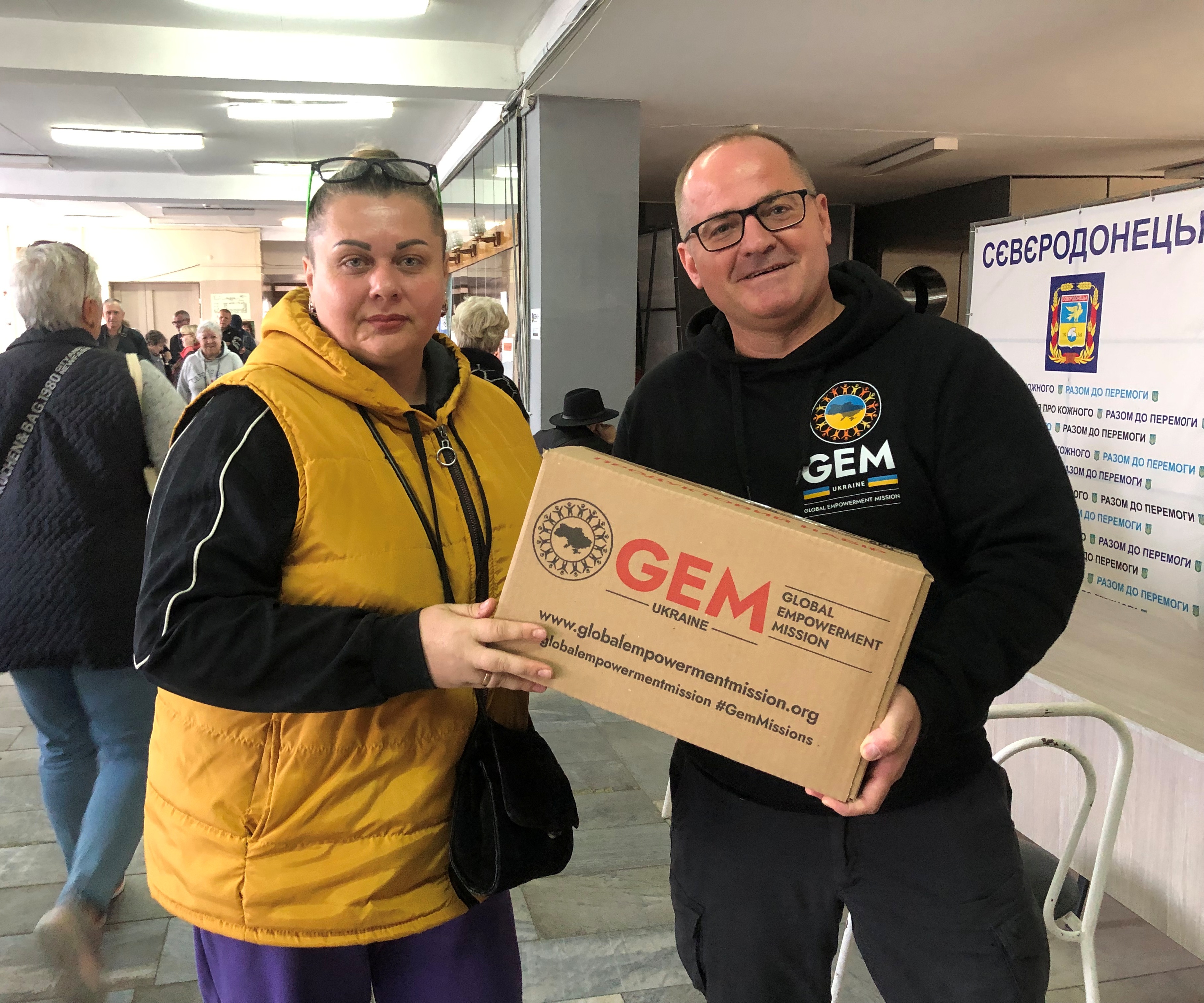 Завдяки представникам міжнародної організації Global Empowerment Mission Ukraine у співпраці з Howard G Buffet, сотні переселенців – мешканців Сєвєродонецької громади та Луганської області - продовжують отримувати у гумхабі Сєвєродонецької громади у Дніпрі GEM-бокси.