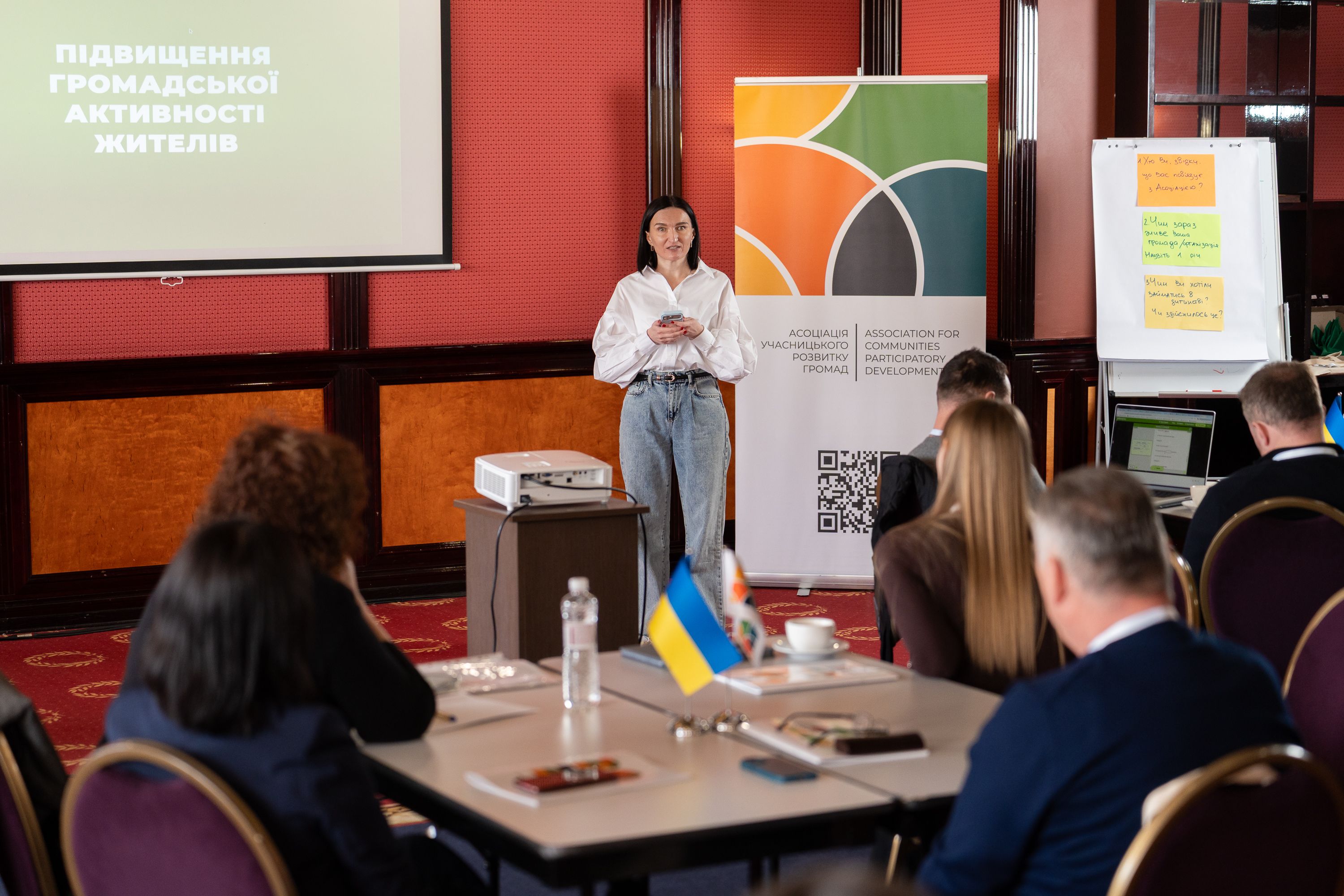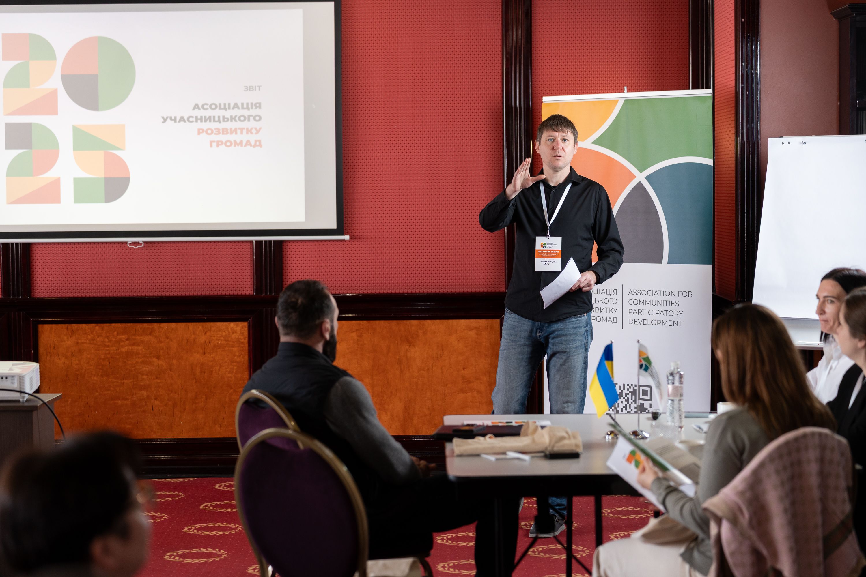 Презентації швидко переросли у живу розмову. Ми ділилися своїм унікальним досвідом: як підтримувати діалог з мешканцями, що розсіяні по всій країні, та як готувати підґрунтя для майбутнього відновлення вже зараз.
