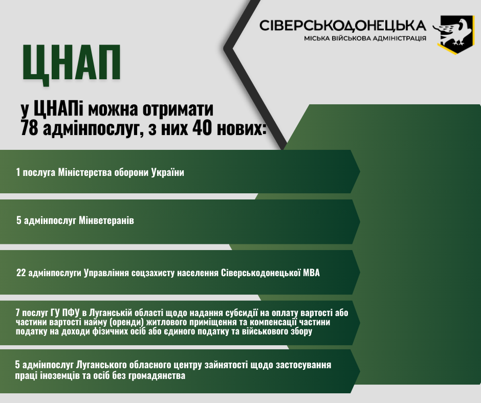 - 2 адміністративні послуги Сіверськодонецької МВА;