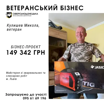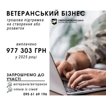 За час дії Комплексної програми підтримки ветеранів/ветеранок і членів їх сімей на створення (розвиток) власного бізнесу виплачено майже 1 мільйон гривень чт, 27 лис 2025 - 14:20