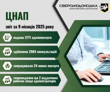 3771 адміністративну послугу надано через Сіверськодонецкий ЦНАП за 9 місяців 2025 року