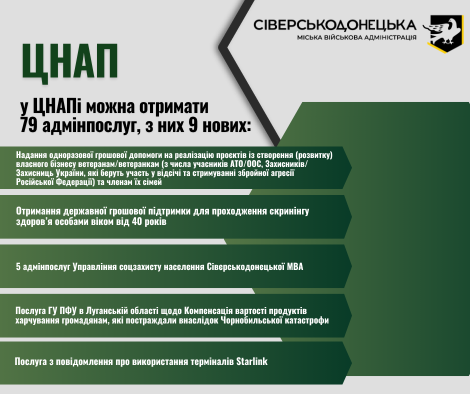 - 3 адміністративні послуги Сіверськодонецької МВА;
