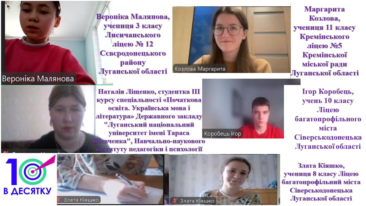 29 юних мовознавців із Луганської області – переможці обласного етапу серед учнів 3–11 класів закладів загальної середньої освіти, а також здобувачів професійної, фахової передвищої та вищої освіти – долучилися до фінального етапу ХХVІ конкурсу разом з учасниками з усієї України та світу.