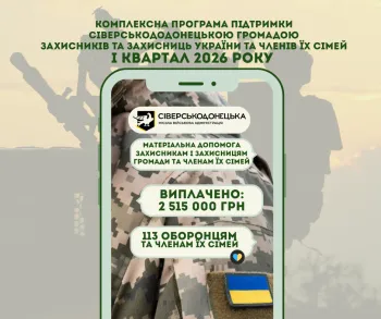 чт, 19 бер 2026 - 12:33 Майже 800 тисяч гривень виплачено ще 25 військовослужбовцям Сіверськодонецької громади та 16 членам їхніх родин