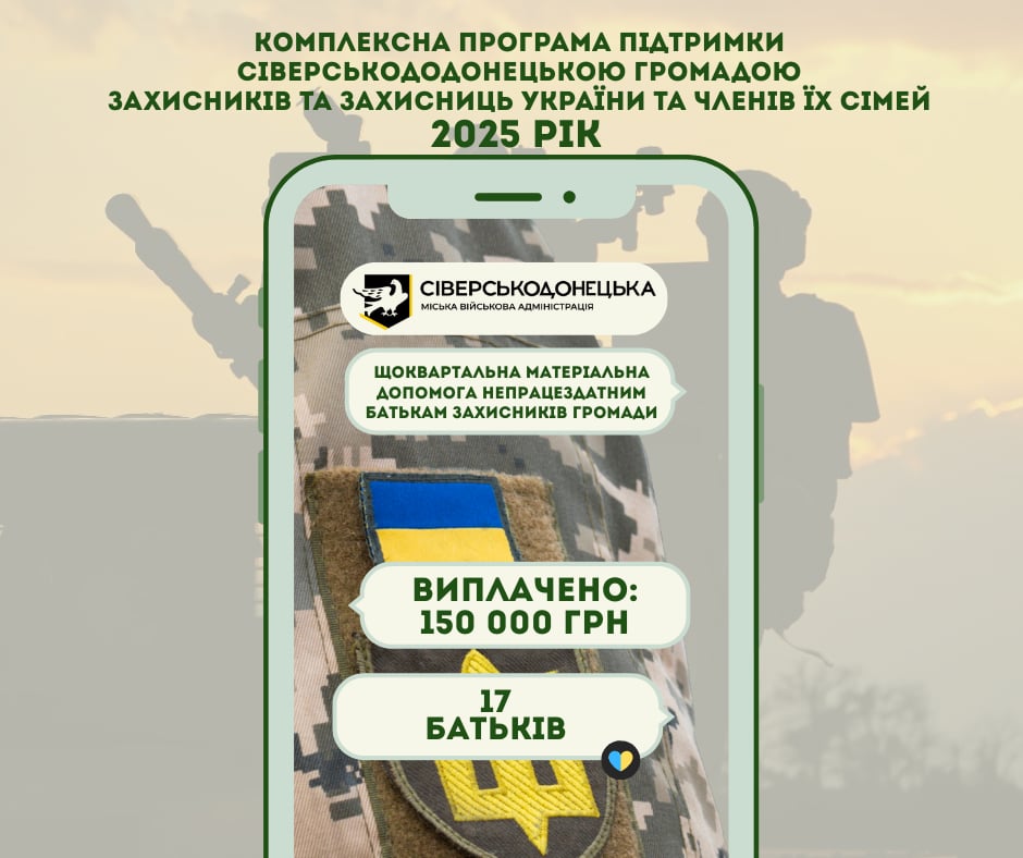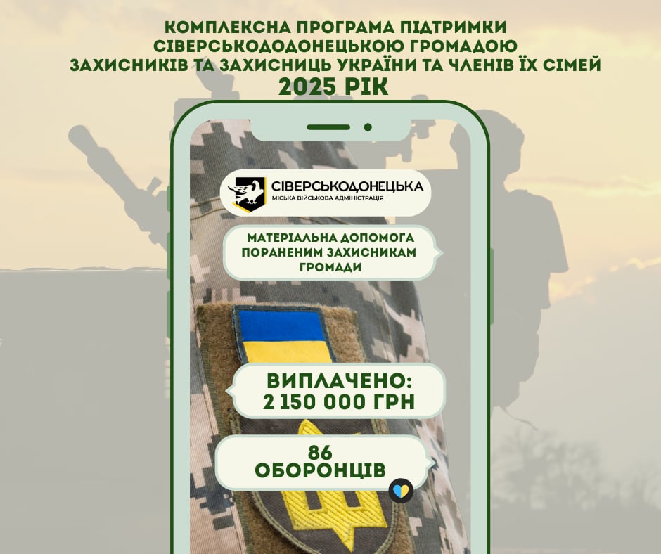 У 2025 році Сіверськодонецька МВА забезпечила грошовою допомогою 968 військових громади та членів їх сімей на 20 678 000 грн. Це ті, хто звернувся за допомогою. Намагаємось охопити виплатами якомога більшу кількість оборонців.