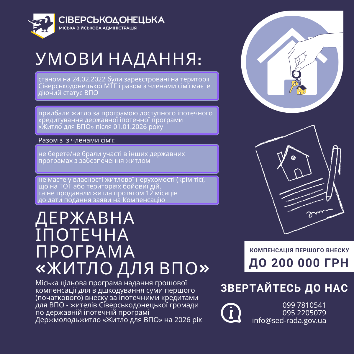 Сіверськодонецька МВА запускає підтримку для жителів Сіверськодонецької громади, які купують житло за іпотечною програмою Держмолодьжитло у співпраці з KfW/CEB (БРРЄ) «Житло для ВПО».