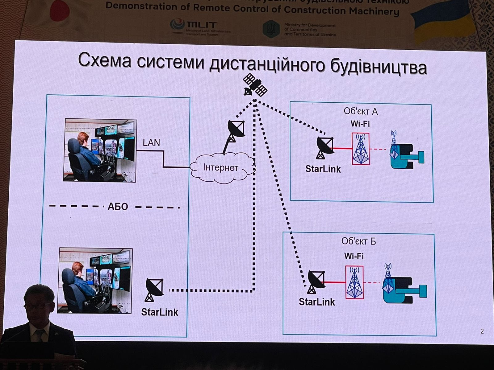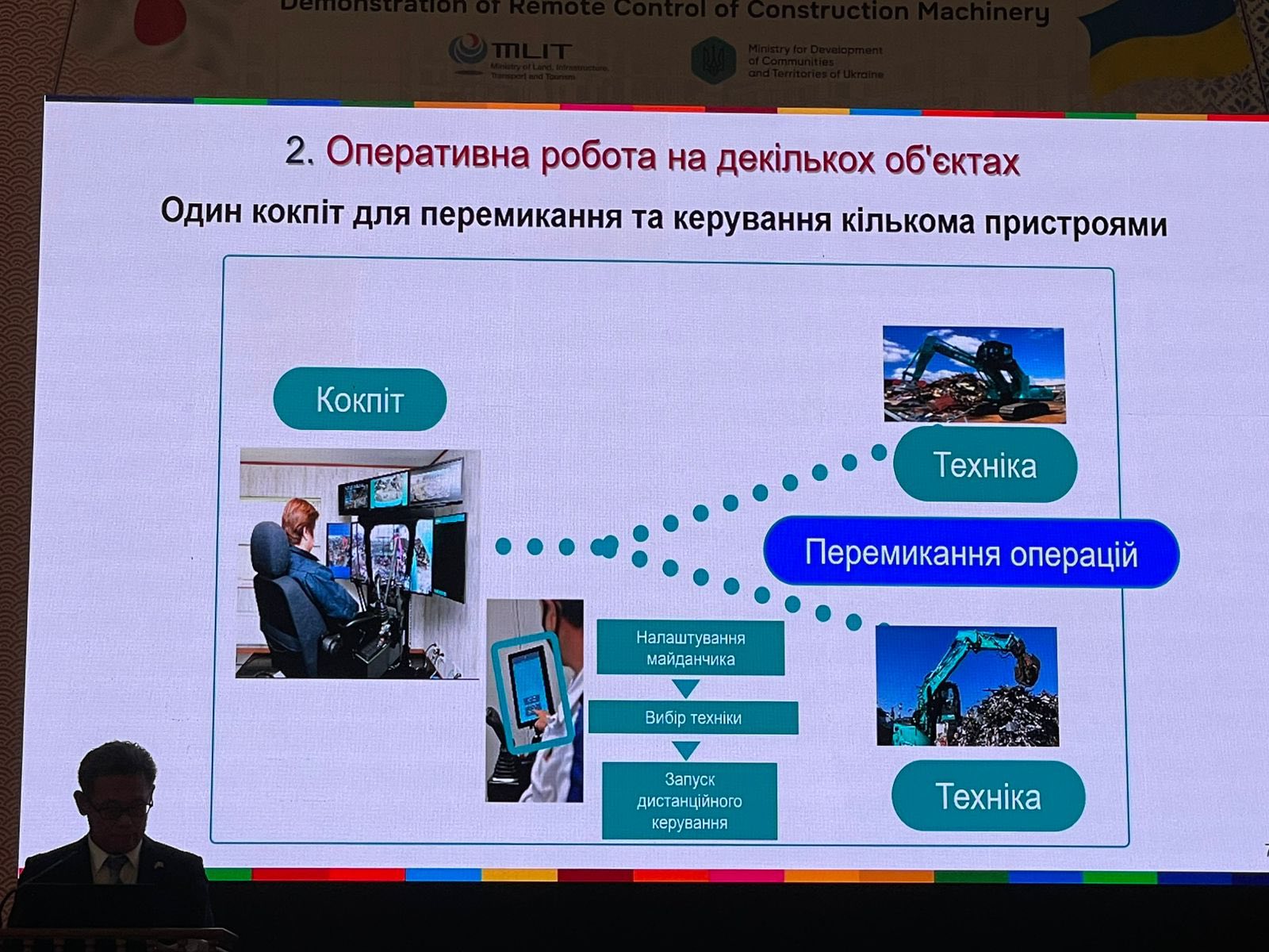 Презентація техніки дистанційного будівництва є частиною роботи Японсько-української платформи з інфраструктурних технологій для відновлення та реконструкції — JUPITeR, створеної Мінрозвитку та Міністерством землі, інфраструктури, транспорту та туризму Японії. Мета платформи — сприяти участі японських компаній у відбудові та активному впровадженню передових технологій.