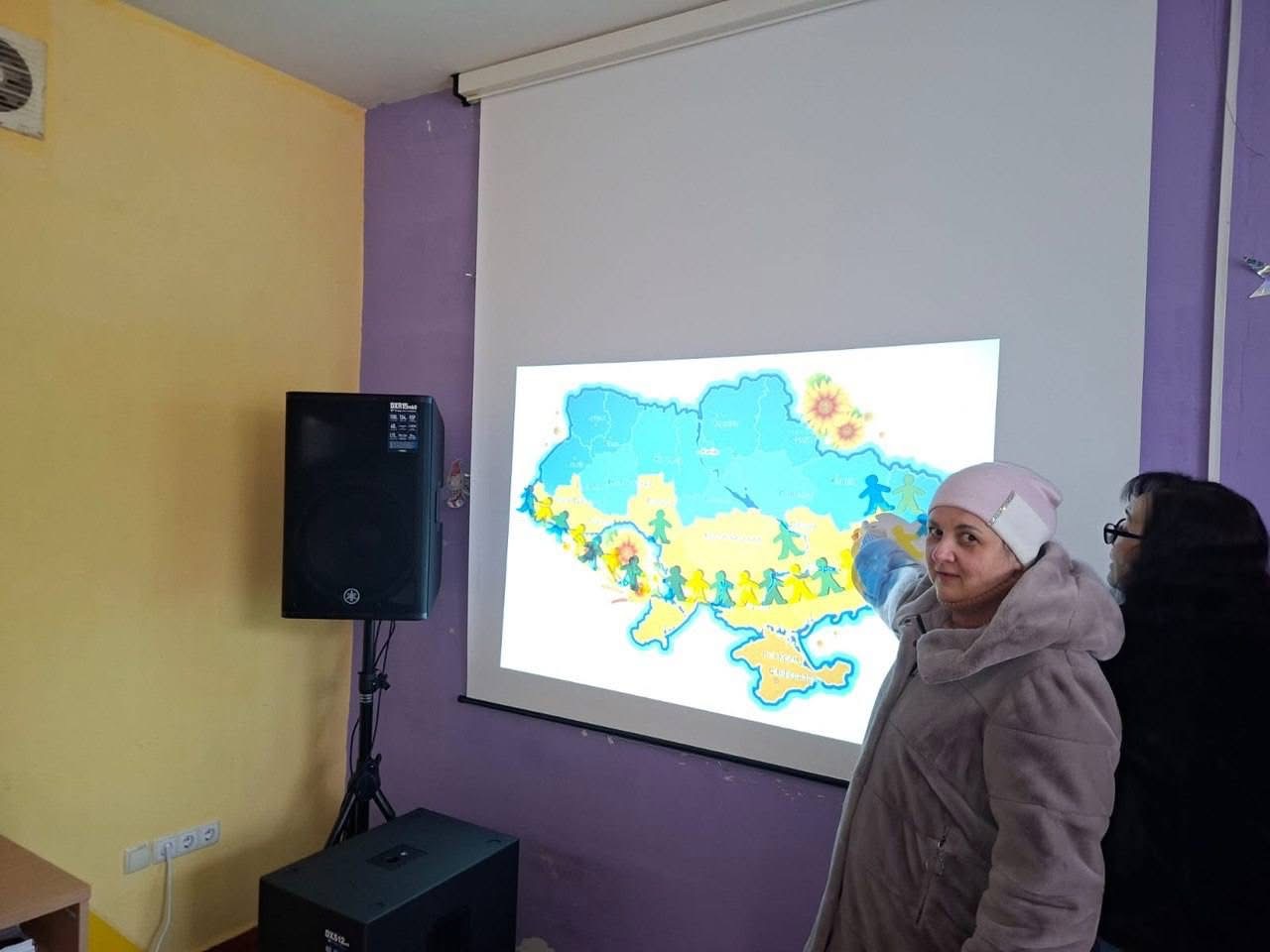 Символічною частиною заходу стала акція «Україна єдина» — на мапі України, на екрані виклали ланцюг єдності від сходу до заходу та позначили міста, де сьогодні перебувають наші сіверськодончани.