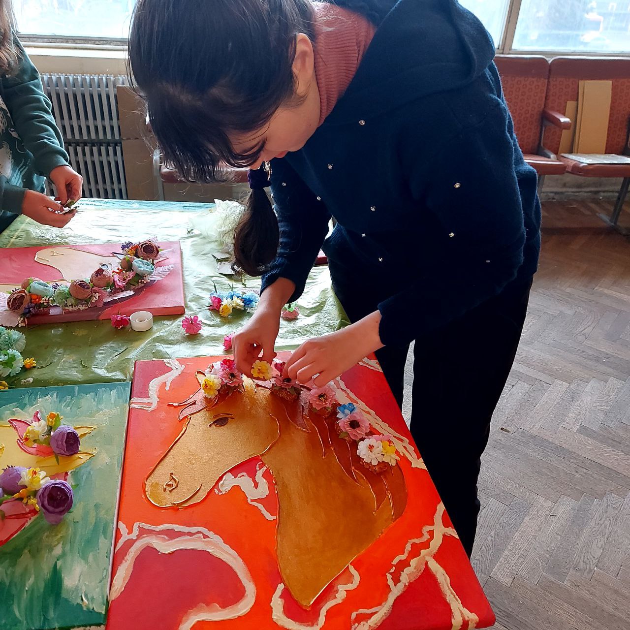 Учні створювали власні талісмани 2026 року – коней, використовуючи фарби, невеликі квіти, прикраси та особисту фантазію.