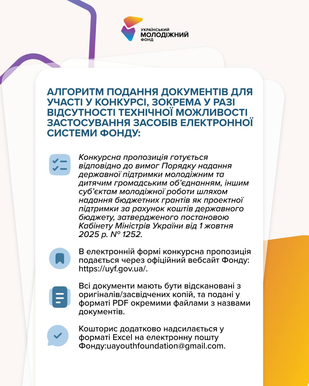 Якщо виникнуть питання - команда Українського молодіжного фонду завжди на зв’язку:
